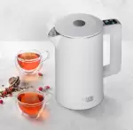 Вроде и пластиковый, но на самом деле стальной, да еще какой. Смотрится красиво, запахов не имеет, воду нагревает быстро и долго сохраняет тепло. Сенсорное управление очень нравится. Кнопочки только маловаты, но со временем привыкла, стала попадать в них нормально. Сенсоры быстро реагируют на прикосновение, дисплей большой и яркий – все хорошо видно. Но проще и быстрее его настроить через телефон. Хоть… Вроде и пластиковый, но на самом деле стальной, да еще какой. Смотрится красиво, запахов не имеет, воду нагревает быстро и долго сохраняет тепло. Сенсорное управление очень нравится. Кнопочки только маловаты, но со временем привыкла, стала попадать в них нормально. Сенсоры быстро реагируют на прикосновение, дисплей большой и яркий – все хорошо видно. Но проще и быстрее его настроить через телефон. Хоть из соседней комнаты, хоть на подходе к дому. Там же видно его состояние – готов или нет еще. Воды нет – не включится, поэтому всегда стараюсь держать его наполненным. Крышка широко открывается, воду наливать удобно.