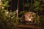 в модуле удобная мебель, большая кровать, шезлонги, собственная терасса. Печка, за которой очень круто почитать книжку и попить чай прохладным вечером. Красивые виды на лес, дикая природа совсем рядом.